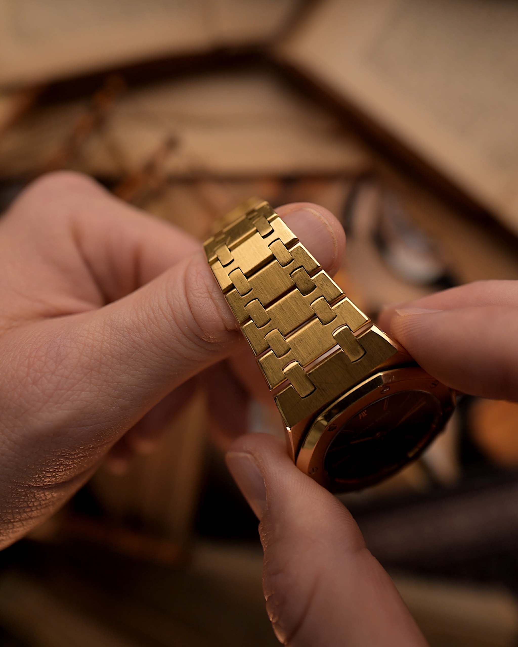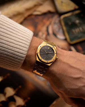 Paired with its original Royal Oak 18k gold bracelet and a signed AP clasp, this reference is a quintessential blend of sport and elegance — a golden icon for serious collectors.