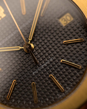 The 14332BA, is the full 18k yellow gold version and comes in absolutely stunning condition. The grey petit-tapisserie dial, produced by Stern Frères, is a work of art — bearing all the rich texture and timeless charm that defines early Royal Oaks.